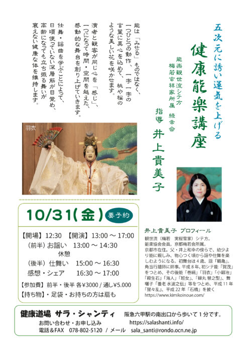 観世流(梅若 実桜雪家) シテ方。能楽協会会員。京都梅若会所属。京都在住。父・井上和幸の傍らで、幼少より能に親しみ、物心つく頃から謡や仕舞を楽しむようになる。初舞台は4歳。謡「鶴亀」。角当行雄師に師事。平成8年、初シテ能「賀茂」をつとめ、その後、能「巻絹」「羽衣」「小鍛冶」「殺生石」「海人」「班女」「蝉丸替之型」舞囃子「養老水波之伝」等をつとめ、平成11年「猩々乱」、平成22年「石橋」を披く。
