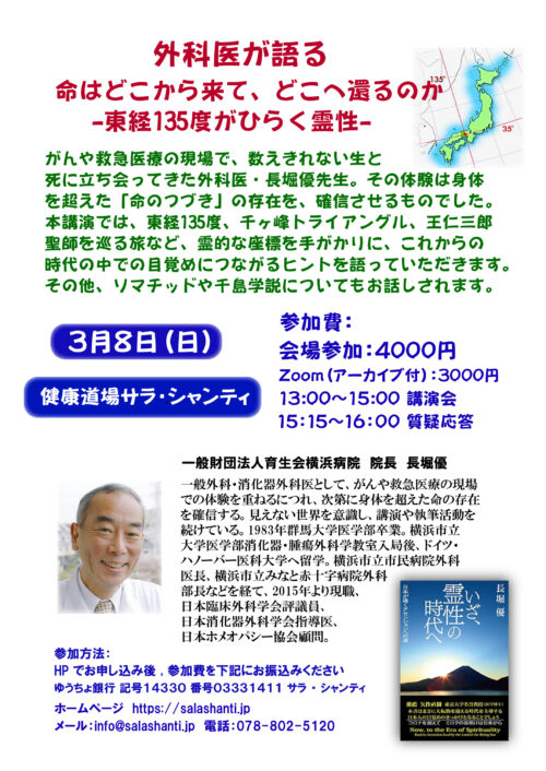 一般財団法人育生会横浜病院院長(医学博士)。一般外科・消化器外科医として、がんや救急医療の現場での体験を重ねるにつれ、次第に身体を超えた命の存在を確信する。見えない世界を意識し、豊かな自然、多様性の共存、皆の幸せを願う縄文の心こそが日本人の精神性のルーツであり、そこに世界の将来がかかっているのではないかとの考えに基づき、講演や執筆活動を続けている(本データはこの書籍が刊行された当時に掲載されていたものです)